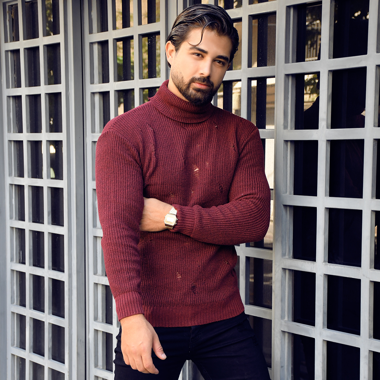 پلیور یقه اسکی زرشکی زاپ دار مردانه مدل U10